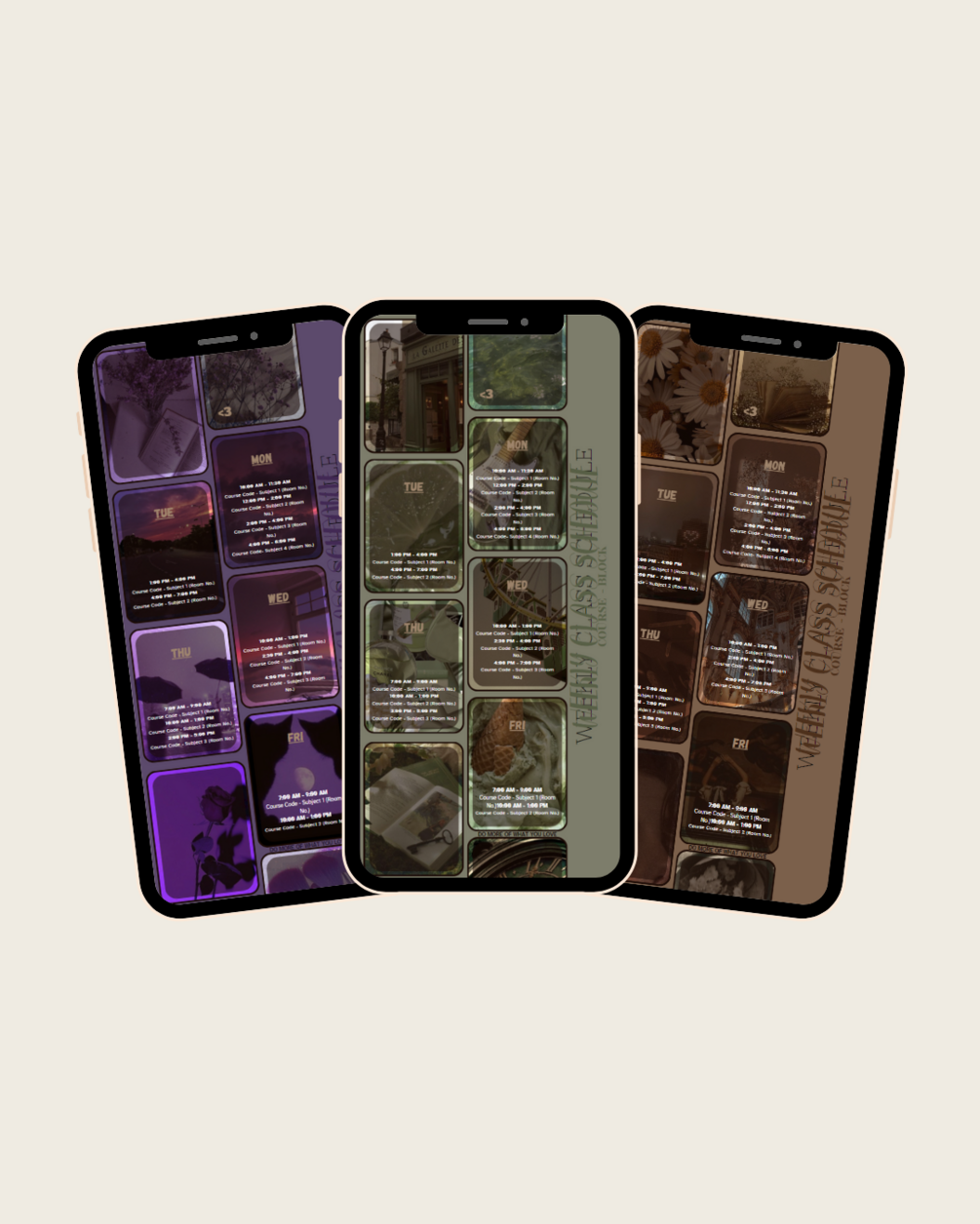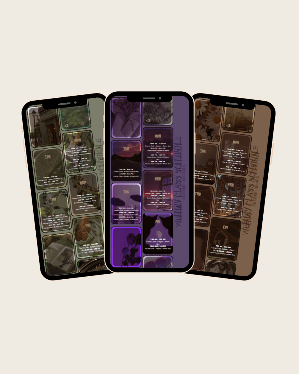 Introducing our Editable Digital Aesthetic Weekly Schedule Wallpaper – a perfect blend of style and functionality for your phone's home or lock screen. This minimalist phone wallpaper is designed with a harmonious color palette of Brown, Purple, and Green, adding a touch of sophistication to your digital space.